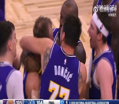 东契奇也冲了过来,湖人三巨头众星拱月一般将肯纳德围在中央,也让这位三分射手激动不已。