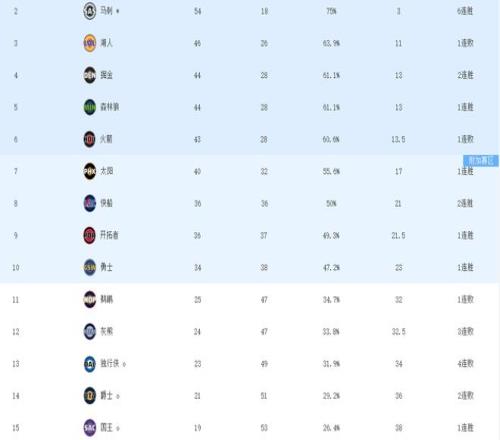 ‍西部这边截止到今天排在第十的勇士队领先第十一的鹈鹕多达9个胜场,基本上已经锁定了附加赛资格。勇士队自从头号球星库里在赛季中期受伤之后,已经连续缺席二十二场比赛,而勇士队在缺阵的情况下仅取得7胜15负的战绩,但他们丝毫不慌,他们依旧以34胜38负稳稳排在西部第十,赛季末如果库里能够及时回归,他们能够向西部第八的名次发起冲击。